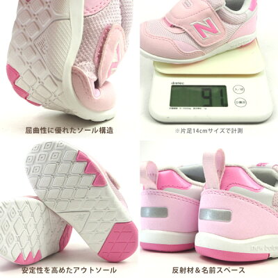 ブランド ニューバランス new balance 品番 IT313F NV PK BL LP カラー ネイビー/レッド(NV),ピンク/パープル(PK),パウダーブルー(BL),パウダーピンク(LP) サイズ 11.0cm 11.5cm 12.0cm 12.5cm 13.0cm 13.5cm 14.0cm ▼サイズ感 メーカー表記:W(標準・やや幅広) 重量:約 91g(片足14.0cmサイズ) 素材 アッパー:人工皮革/合成繊維ソール:ゴム底 生産国 VIETNAM 特徴 子どもの足の成長をサポートする機能を満載した「313」シリーズ最新モデルから、ファーストシューズが登場。